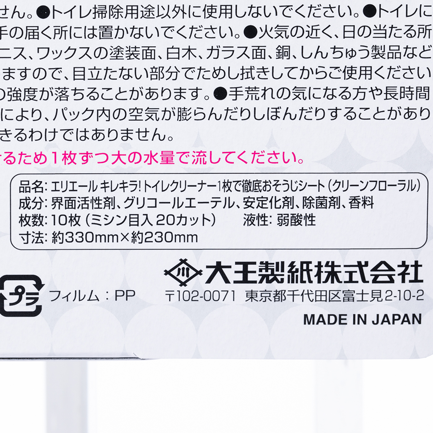 エリエール キレキラ トイレクリーナー 1枚で徹底おそうじシート