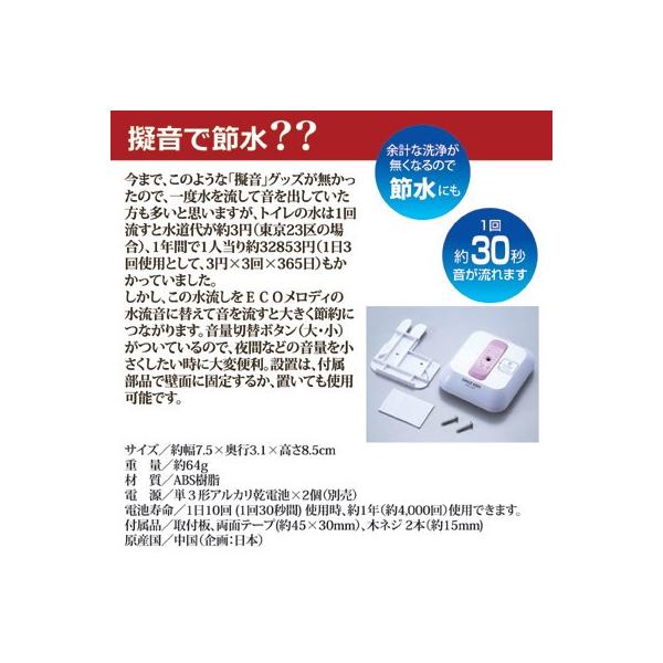 トイレの音消し 節水 節約 エコ商品 トイレの音消しecoメロディ2 快適生活応援商品 水の音 センサー式 トイレ 音消し 消音 節水 アイデア 商品 便利 グッズ プレゼント 日用品雑貨 お香 数珠 仏壇のe namu庵心堂