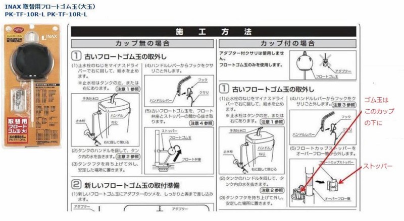 inax pk tf 10r l フロートゴム玉 65mm の取り替え