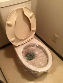 トイレの便器にラップを貼るイタズラ