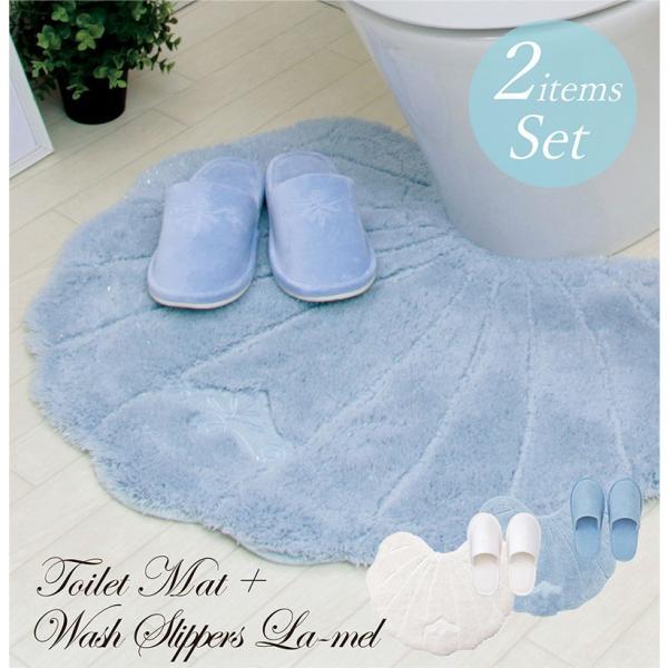 トイレマット セット 2点セット おしゃれ 洗える スリッパ 貝 シェル 安い 抗菌 防臭 マリン ホワイト ブルー 海 ルソンドラメール 製造元 10003976 パウダーバス ヒーリング 通販 yahoo ショッピング