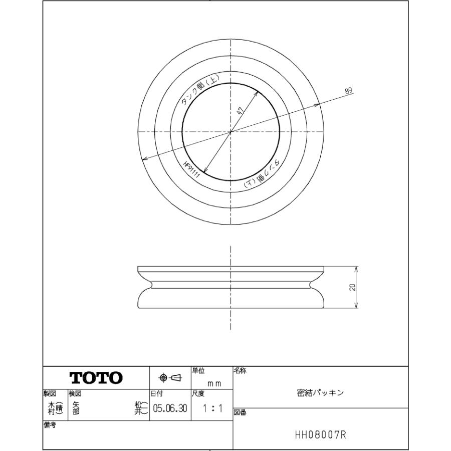 toto ロータンク用密結パッキン hh0707r