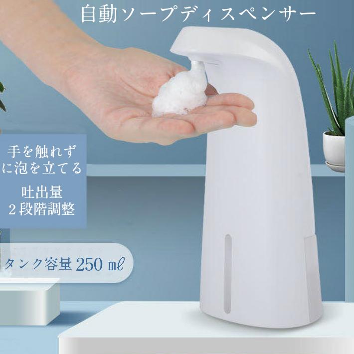 ソープディスペンサー 泡 自動センサー 非接触 除菌 minaya 電池式 防水 オート ノータッチ ハンドディスペンサー 250ml ソープ量調整可トイレ 洗面所 キチン用