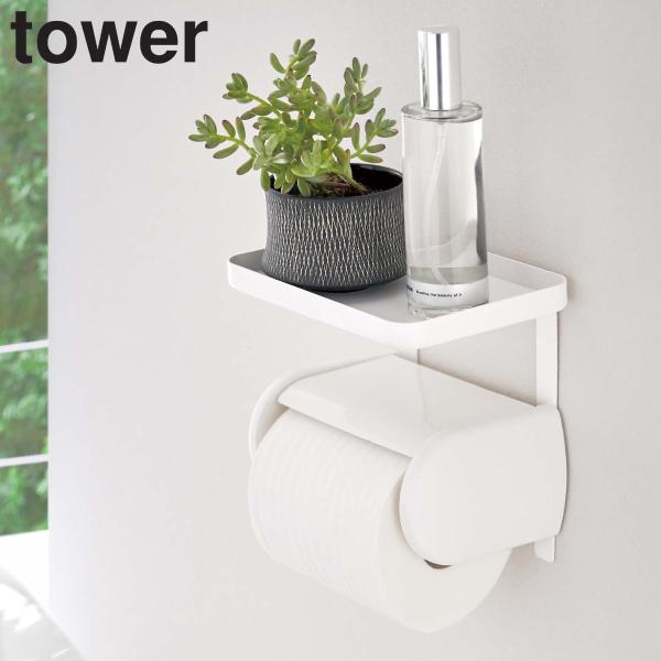 トイレ収納 トイレットペーパーホルダー上ラック タワー tower 小物置き 棚 トレー 収納 シンプル スペース トイレットペーパーホルダー トイレ用品 トイレ 簡単設置 スマホ 掃除用品 おしゃれ ホワイト ブラック 北欧 4392 4393 山崎実業 yamazaki