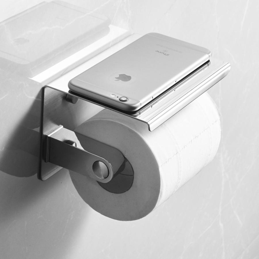 gemitto トイレペーパーホルダー 紙巻器 棚付き 304ステンレス 防錆 ホテル 浴室 スマホ置き ねじ取り付け シルバー 丸棒14 5 10 10cm