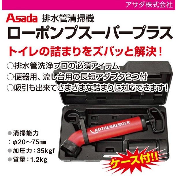 即納可 送料無料 アサダ ローポンプスーパープラス r72070c ケース付 排水管掃除機 トイレのつまり 浴室 流し台 洗面台 排水溝 風呂など水まわり故障に r72070c toolshop y s factory ヤフー店 通販 yahoo ショッピング