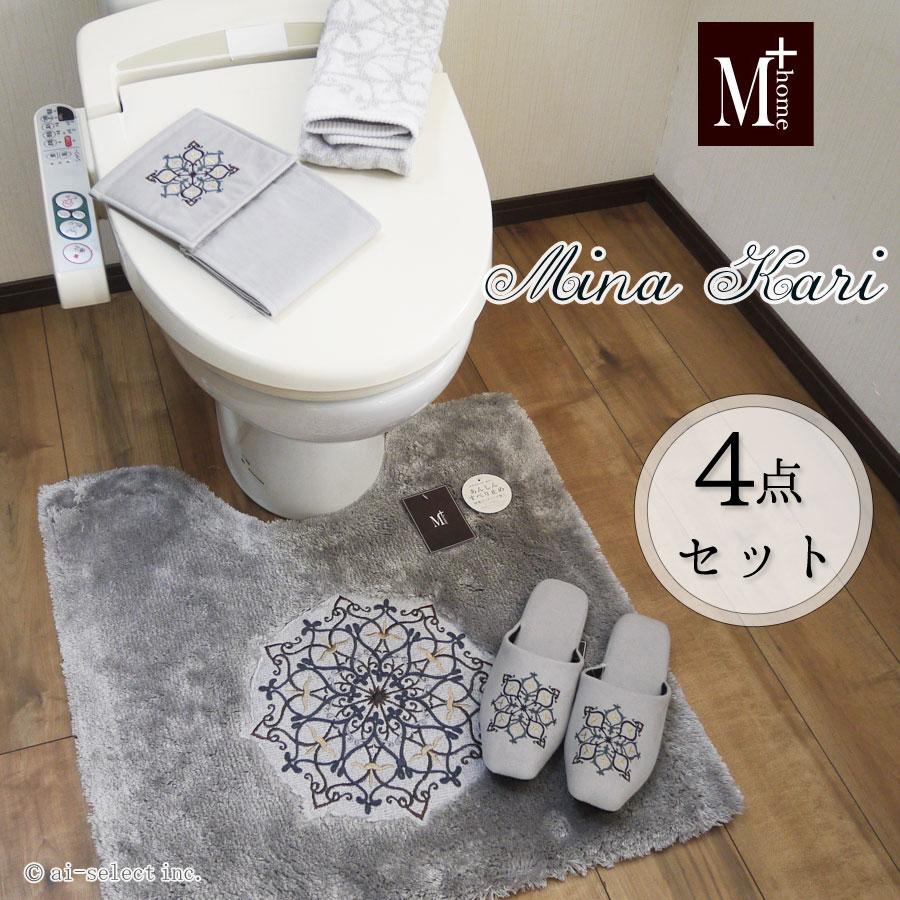 トイレマット フタカバー無し 4点セット クーポン付 ちょっとお得 サミーラ グレーベージュ トルコブルー グリーン おしゃれ 可愛い ダマスク アラベスク samila4p カフェカーテン トイレマットai 通販 yahoo ショッピング
