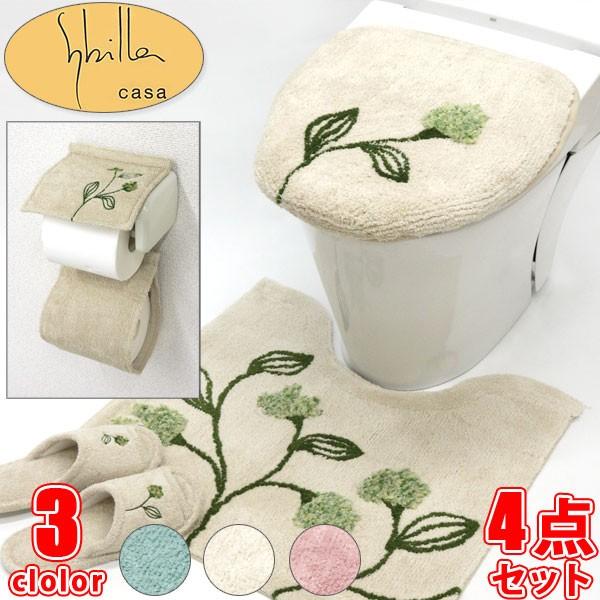 トイレ4点セット 普通型 洗浄暖房型兼用フタカバー マット ペーパーホルダー トイレスリッパ アイビー トイレマット セット トイレカバー 便利 かわいい おしゃれ