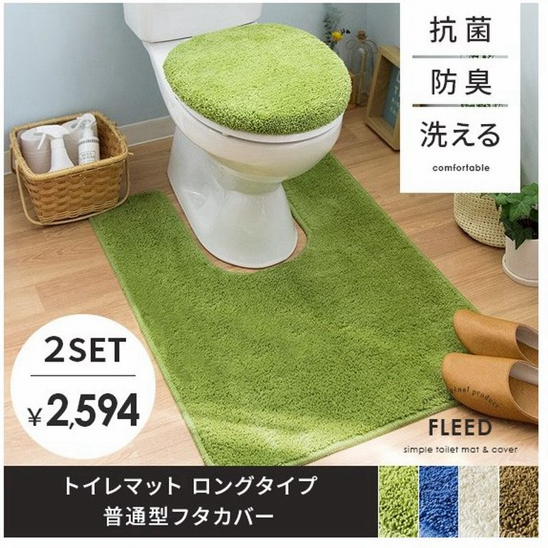 トイレマット 4点 耳長 ロング 北欧 おしゃれ 消臭 滑り止め 高級ブランド 風水 ドレニモ型 ブルー 青 グリーン ピンク ベージュ フレッシュデオ 4点セット 送料無料 セット トイレマット カバーセット