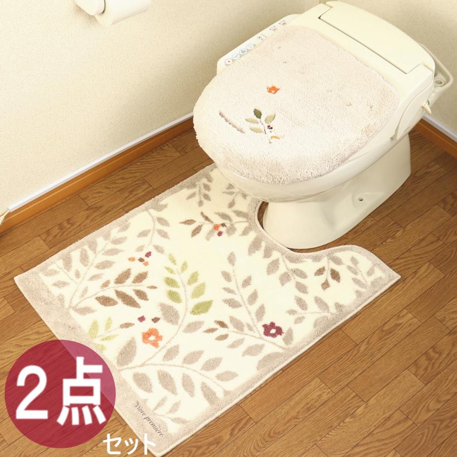 トイレマット セット 2点 ロングマット ふたカバー おしゃれ 北欧 風水 高級ブランド 耳長 日本製 花柄 フラワー グリーン ベージュ オカ サンリーフ 2oslgyml proバイダー ヤフー店 通販 yahoo ショッピング