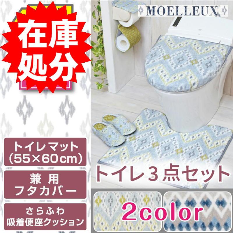 トイレマット 55 60cm モワルー 北欧 トイレ マット キリムブルー トイレ用マット 足元マット 低反発 単品 滑り止め すべり止め 55 60 幅60cm トイレ用品 60 ふわふわ モコモコ さらさら パイル生地 民族柄