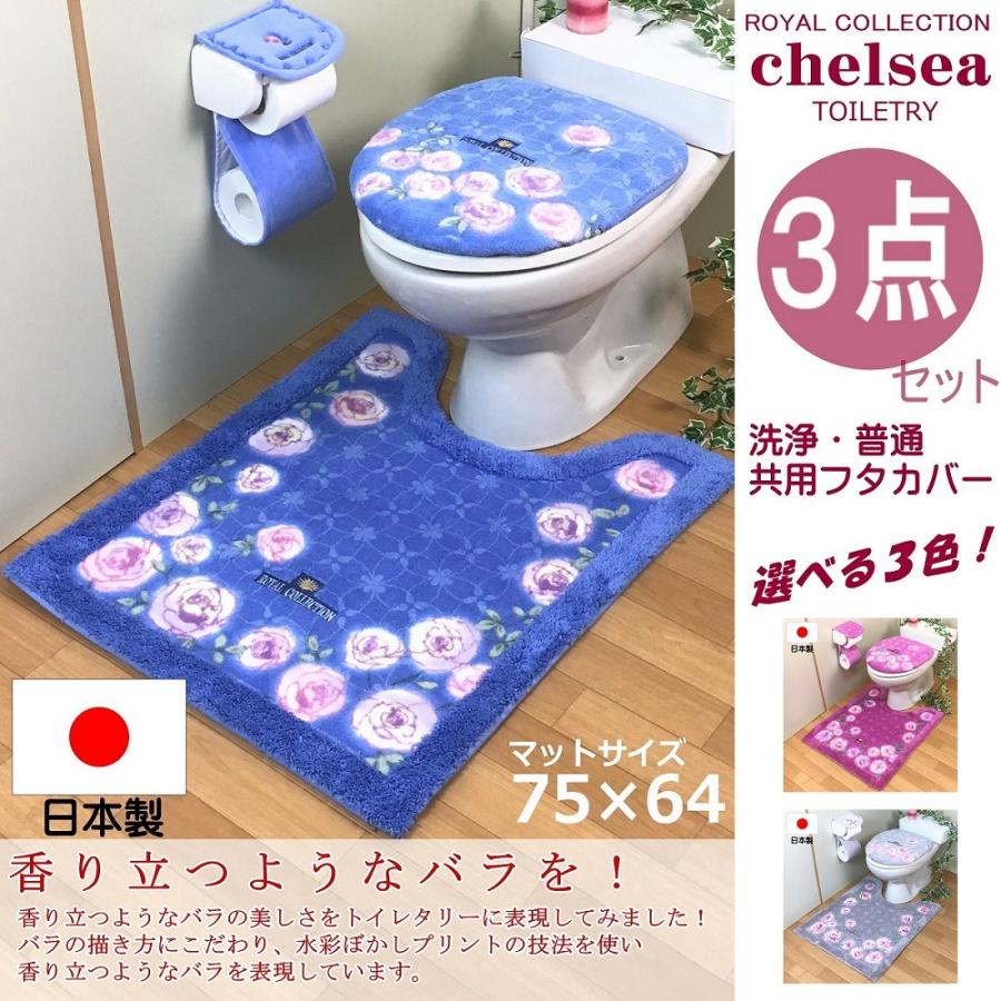 トイレマットセット 3点セット ロング 花柄 おしゃれ ペーパーホルダーカバー おしゃれ 日本製 北欧 ブルー ピンク グレー オカ チェルシー 3ochblph fcml proバイダー ヤフー店 通販 yahoo ショッピング