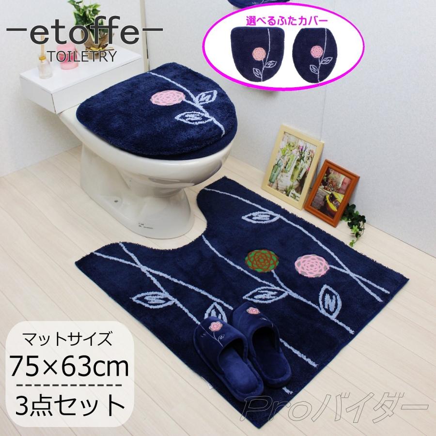 amazon co jp 北欧 おしゃれ トイレマット セット 4点 ブルー 洗浄暖房型 かわいい 花 モダン フラワー 鮮やかな深い青 オカ エトフ ネイビー ホーム キッチン
