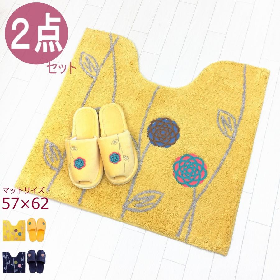 金運の黄色が鮮やか 北欧 おしゃれ ロング トイレマット 4点 イエロー 洗浄暖房型 花 モダン 耳長 フラワー オカ エトフ
