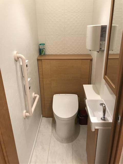 桑名市のトイレリフォーム事例 キャビネット付きで収納力ばつぐん 広くて清潔感のあるトイレ