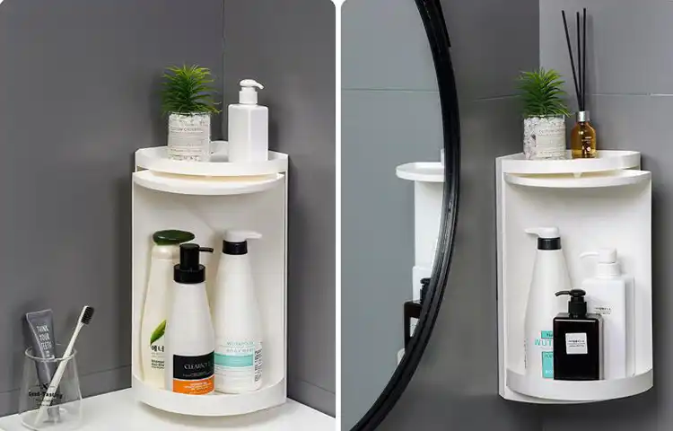 洗面所収納 強力粘着 溶室 整理 三角コーナー トイレ収納 トイレラック 収納棚 おしゃれ シンプル お風呂場 バスルーム スリム おしゃれ 便利 om292 癒し館 通販 yahoo ショッピング