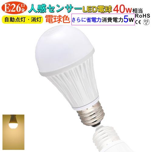 送料無料 定形外 led電球 人感センサー付 60w e26 512 556lm 電球色 昼白色 動きを感知して自動点灯 消灯 省エネ 長寿命 玄関 トイレ 廊下 天井 照明 40w slt