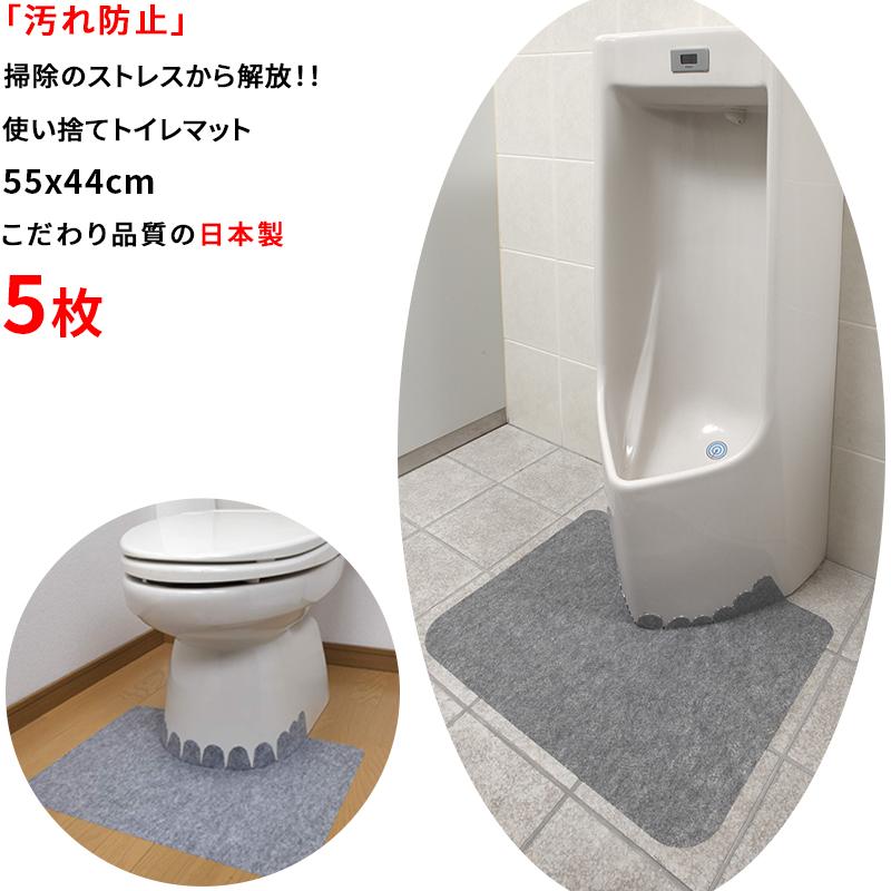 サンコー ずれない トイレマット 男性用小便器対応 床汚れ防止マット グレー 5枚入 おくだけ吸着 日本製 kh 16 巾55 奥行44cm 厚み1mm