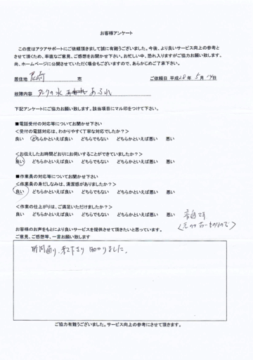 大阪府八尾市 トイレ水漏れ修理 街の水道屋さん 山川設備