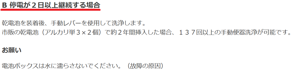 totoネオレストa停電時 断水時の流し方