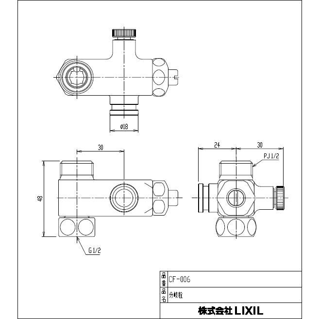 lixil inax 便座部品 シャワートイレ用止水栓付分岐金具 呼び8ミリ給水ホース分岐用 水抜き栓付 cf 006 水道屋さん