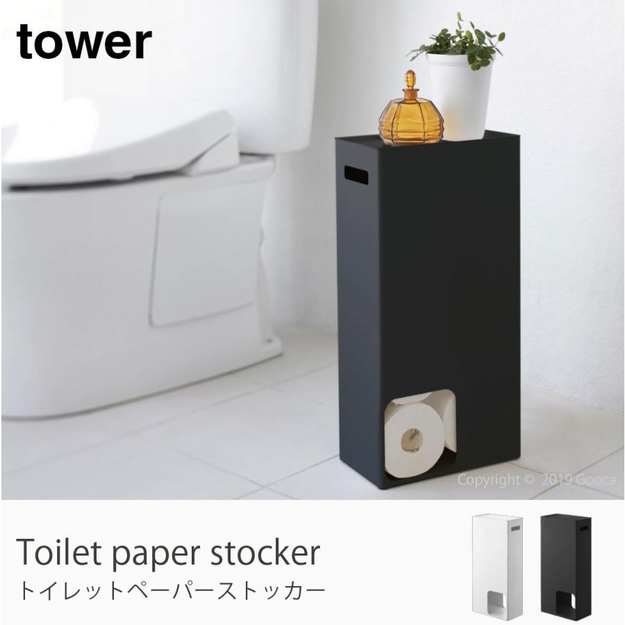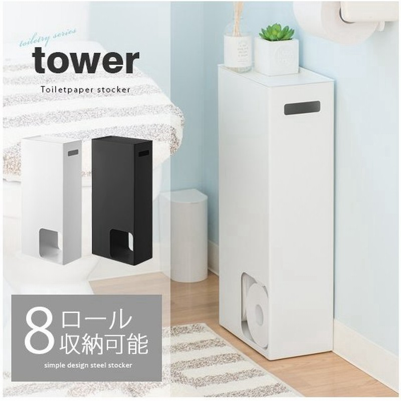 トイレットペーパーストッカー タワー ホワイト ブラック tower 3455 3456 山崎実業 yamazaki トイレ収納 スリム トイレラック おしゃれ トイレ 収納 ラック 収納棚 トイレットペーパー ストッカー 棚 北欧 ナチュラル シンプル 8ロール収納