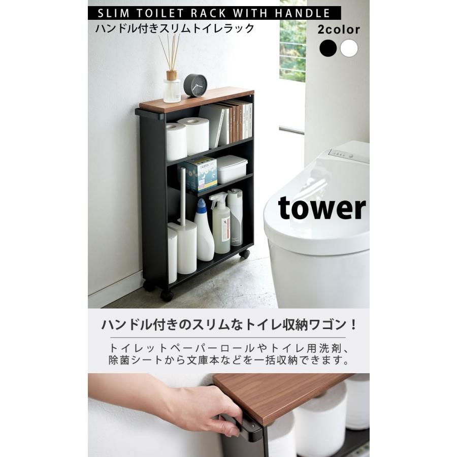 ハンドル付き スリムトイレラック タワー ホワイト ブラック tower 4306 4307 キャスター付き 山崎実業 yamazaki トイレ収納 スリム トイレラック おしゃれ トイレ 収納 ラック 収納棚 トイレットペーパー ストッカー 棚 北欧 ナチュラル