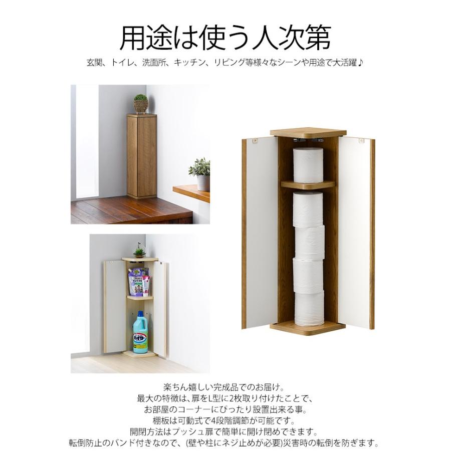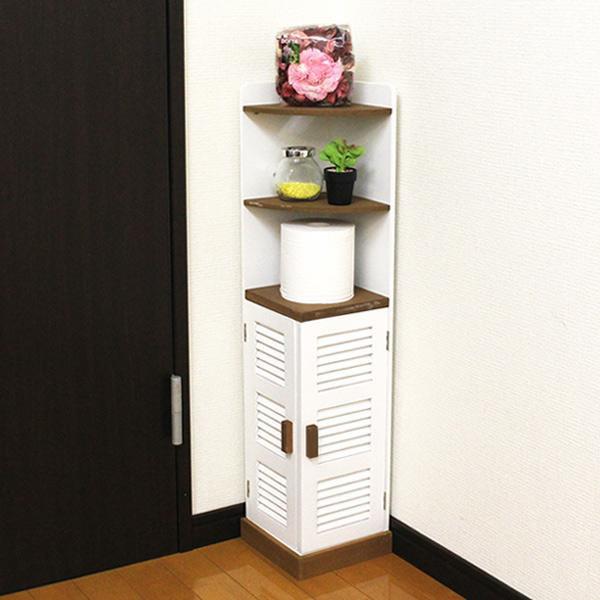 楽天市場 送料無料 コーナートイレラック 幅16cm 奥行18cm コーナーラック スリム おしゃれ 薄型 トイレ 収納 扉付きトイレットペーパー ストッカー 掃除用具入れ コンパクト 木製 隙間収納 収納棚 省スペース サニタリーラック すき間収納 シェルフ 整理棚 ホワイト 白