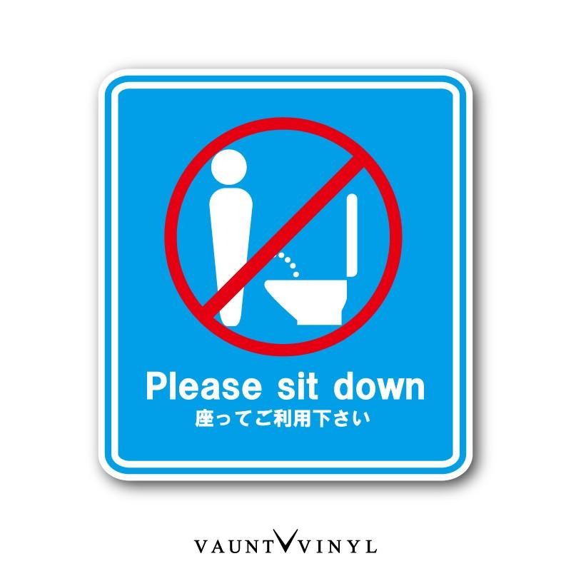 トイレ用 ステッカー 座ってご利用下さい トイレ マーク 座って 座る 座りション サイン シール シンプル 案内 プレート 標識 表示 防水 防水シール vaunt vinyl sticker store