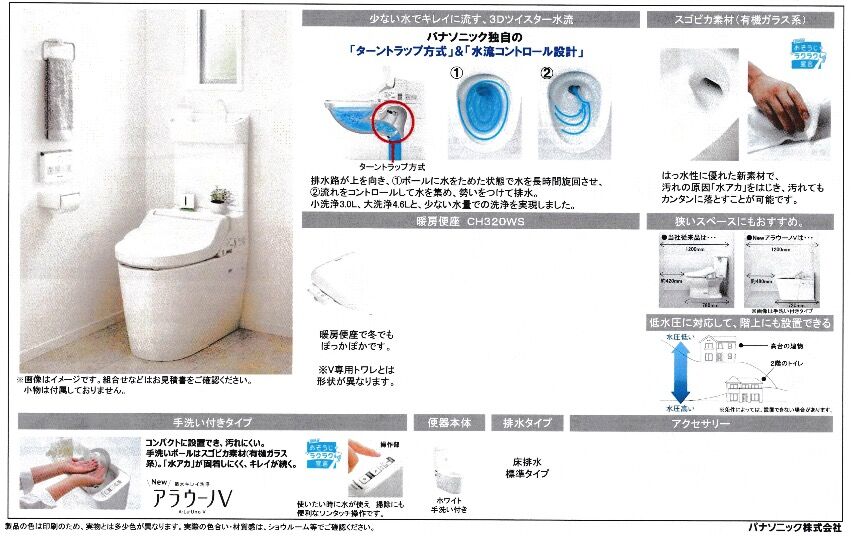 品番 価格一覧 少ない水でも キレイにできるトイレ new アラウーノv トイレ panasonic