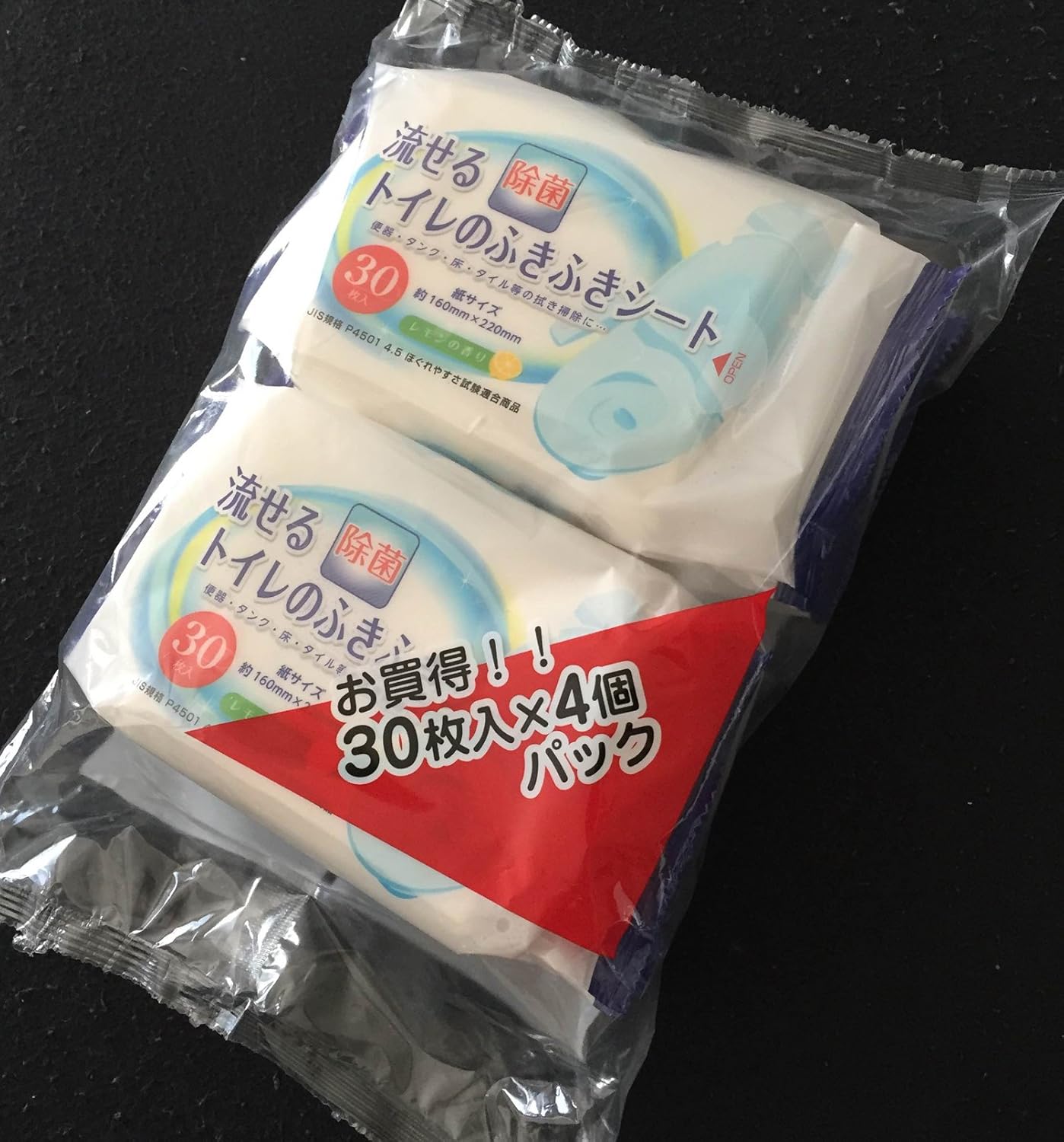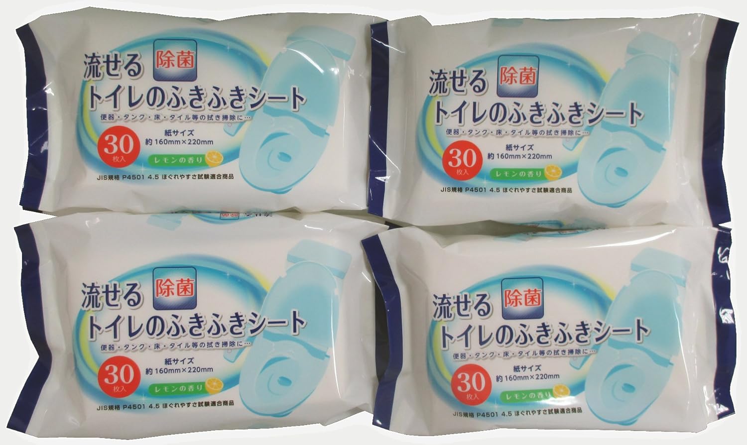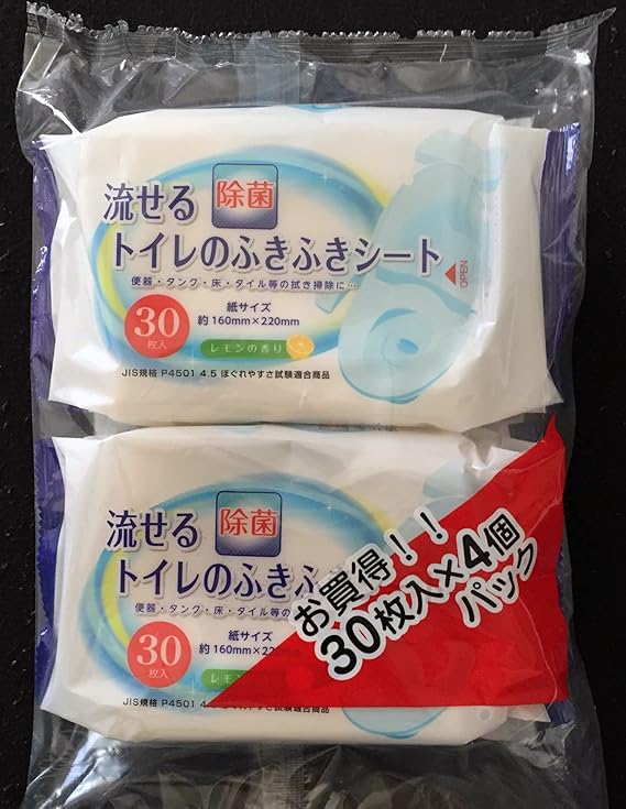 日本製 流せる除菌トイレの拭き拭きシート レモンの香り 30枚 4個パック