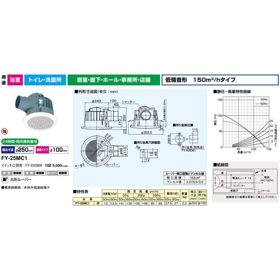 生産完了品 ダクト用換気扇 丸形グリル 天井埋込形 丸穴据付タイプ サニタリー用 低騒音形 接続パイプf100mm 埋込寸法f170mm vd 08zcc5 m