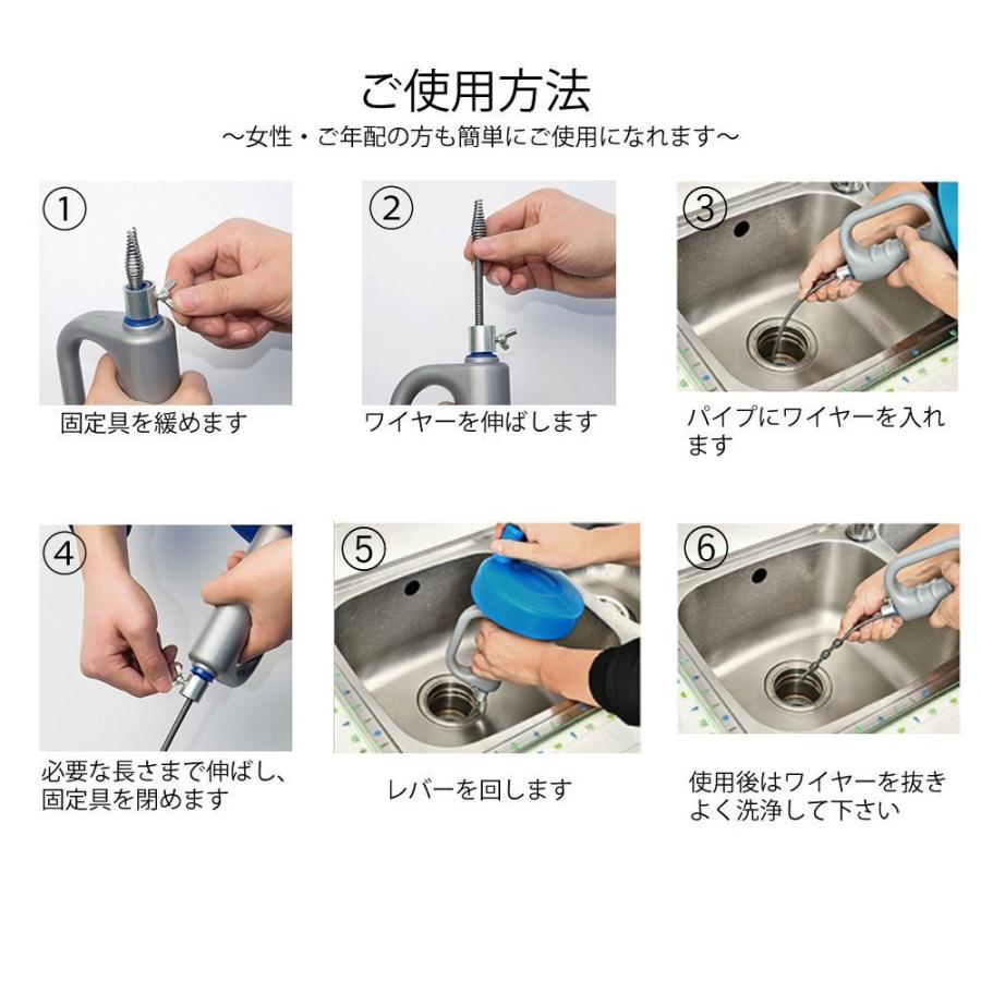 パイプクリーナー ワイヤー ブラシ 回転式 5m 排水口 詰まり解消 つまり クリーナー 洗面所 トイレ お風呂 キッチン 水回り 修理 強力 大掃除 掃除 便利