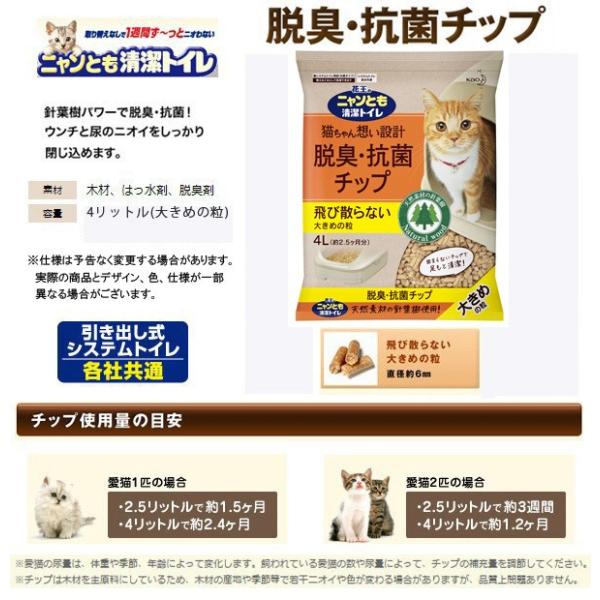 amazon 花王 ニャンとも清潔トイレ 脱臭 抗菌チップ 大きめの粒 4l 4個 ケース販売 システムトイレ用 ニャンとも清潔トイレ 猫砂 通販