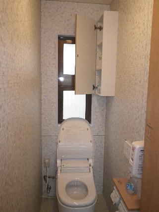 高津区 分譲マンションのトイレ吊り戸棚設置 壁紙張替え 株式会社住建ホーム