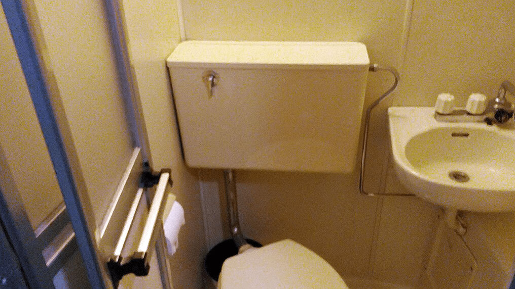 洗面台の下に隠れているトイレタンクの交換 ユニットバス トイレ救急社 トイレ詰まりと水漏れ修理とオーバーフロー管交換業者トイレ救急社 トイレ 詰まりと水漏れ修理とオーバーフロー管交換業者