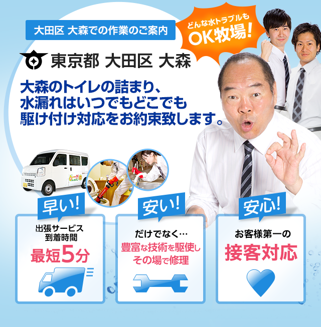 大田区の水漏れ トイレつまり 水道修理を他社より1円でも安く 住まいる水道