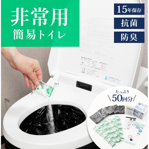 楽天市場 簡易トイレセット 50回分 送料無料 純正日本製 防災セット 防災グッズ 防災用品 消臭凝固剤 固まる 使い捨て 長持ち 簡単 トイレ 介護用 介護用トイレ におい 非常時 トイレ 災害用トイレ 安心安全 臭い 汚物処理 非常用トイレ 抗菌 携帯トイレ 災害時