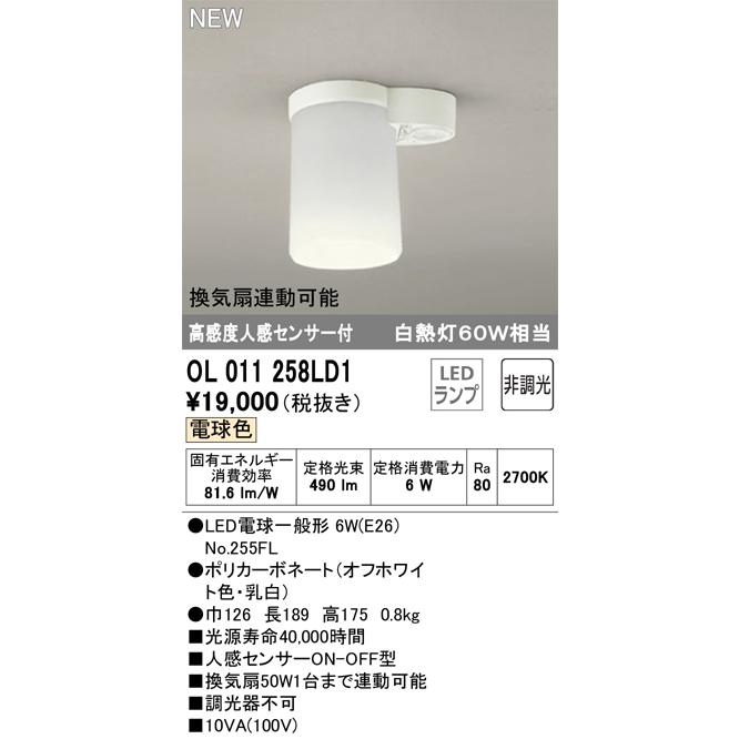 amazon オーデリック led小型シーリングライト トイレ用 換気扇連動可能型 白熱灯60w相当 電球色 非調光タイプ 人感センサー付 ol011258ld odelic オーデリック シーリングライト