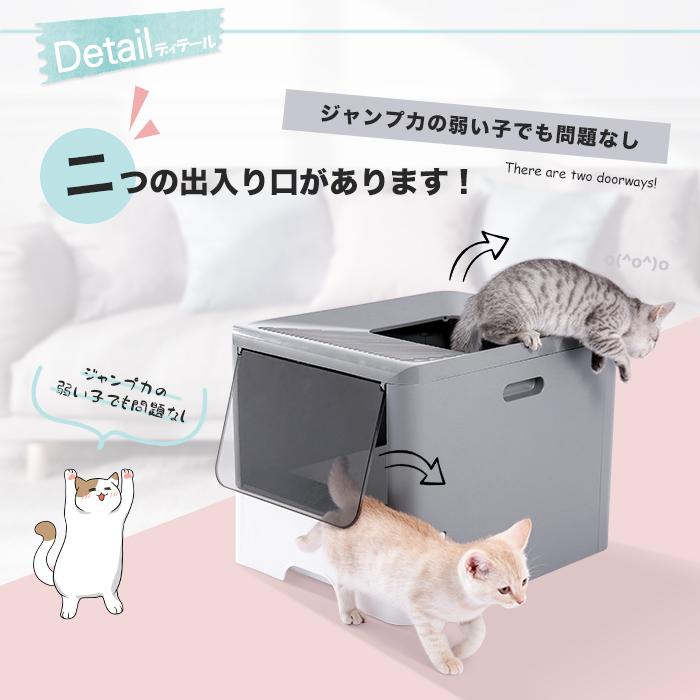 猫 トイレ 上から 猫トイレ 上から入る 猫用 トイレ 本体 猫砂が飛び散らない 2ドア式 大型 大きい 多頭飼い 猫トイレ本体 おしゃれ 猫砂 掃除 飛び散り防止 ねこ ネコ スコップ付 ハピポート 楽天市場店