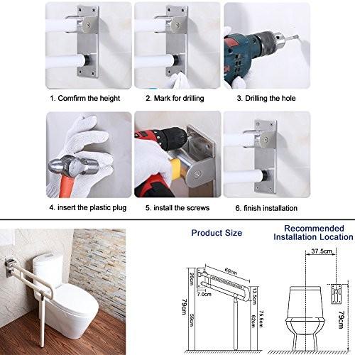 lekoc トイレ用手すり トイレ用アーム 立ち上がり補助 身体障害者 高齢者介護 滑り止め 防水 幅 高さ調整可能