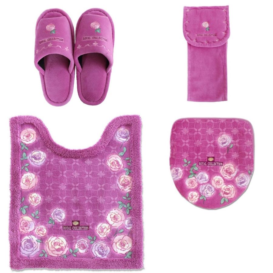 amazon ロング トイレマット セット おしゃれ 2点 スリッパ 高級 日本製 抗菌 防臭 オカ チェルシー ピンク 北欧 バラ 花 フラワー トイレマット タンクカバー ホーム キッチン オンライン通販
