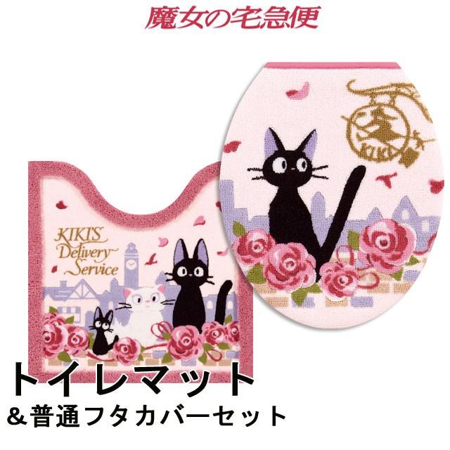 魔女の宅急便 まちなみ トイレマットとフタカバーのセット 10 off クロねこのジジ 抗菌 防臭吸水素材