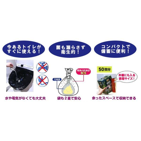 bos 非常用トイレセット 50回分 凝固剤 汚物袋 bosの3点セット 簡易トイレ 防災 避難生活用品 携帯トイレ au pay マーケット