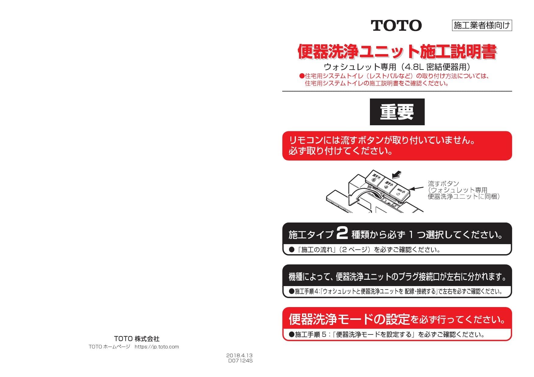 toto ウォシュレットリモコン 型番