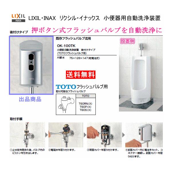 取付カンタン 押ボタン式から自動洗浄へ lixil inax 小便器自動洗浄装置 流せるもんu 後付けタイプ ok 100tk totoフラッシュバルブ用